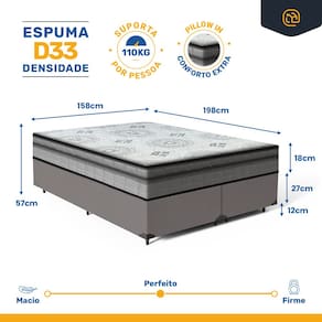 - Dimensões do produto (largura x comprimento x altura) Queen: 158x198x39cm (2 partes 79cm)
