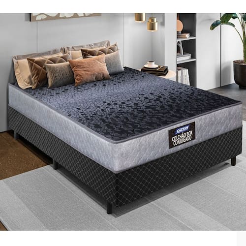 O Cama Box Conjugado Casal 138cm Supreme Gazin oferece conforto e resistencia ideais para o dia a dia. Seu revestimento superior e lateral em tecido plano evita o acumulo de poeira e materiais organicos, facilitando a limpeza. Conta com camada de espuma cilindrica laminada D20, espuma D28 e estrutura em madeira de reflorestamento, garantindo durabilidade e conforto. Um produto com excelente custo-beneficio e acabamento em matelasse.