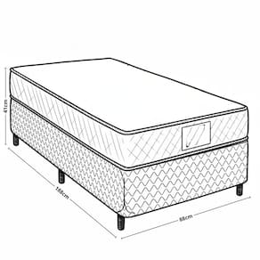 Caracteristicas: Camada de espuma cilindrica laminada D20 Estrutura colchao espuma D28 Estrutura base em madeira de reflorestamento Pes em madeira 12cm Peso maximo suportado 90kg Pillow/Euro One face Matelasse em tecido plano Revestimento lateral e superior em tecido plano Selo Inmetro 008900/2024 Tampo base em TNT 50gr/m