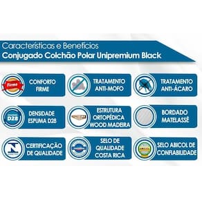 Cama Box Conjugado Solteiro: Colchão Ortopédico UniPremium Black (88x188x40) Polar