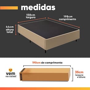 Importante sobre a : A é realizada até a portaria ou porta de entrada do indicado, desde que o acesso seja permitido. Para locais com portaria, a será feita no piso térreo. Não realizamos montagem, desmontagem, por escadas ou içamento. É responsabilidade do cliente verificar se as dimensões do produto são compatíveis com portas, elevadores e corredores. Evite imprevistos: confira todos os detalhes antes de concluir sua compra. MEDIDAS DO BOX:: [ A ] = 44 cm / 32 cm (Sem pés) [ L ] = 158 cm [ P ] = 198 cm | MEDIDAS INTERNAS DO BAÚ:: [ A ] = 26 cm [ L ] = 145 cm [ P ] = 190 cm | ALTURA DOS PÉS:: 12 cm | IDEAL PARA COLCHÃO DE ATÉ:: 158 cm | PESO:: 43Kg | SUPORTA ATÉ:: 120Kg por pessoa | MODELO:: Box Baú Base Casal Queen para Colchão de Desmontável | MARCA:: Sider | POSSUI PÉS:: Sim | MATERIAL DOS PÉS:: Polipropileno | QUANTIDADE DOS PÉS:: 9 | MATERIAL DA ESTRUTURA:: Eucalipto tratado reflorestado | ESPESSURA DO MATERIAL DA ESTRUTURA:: 2 cm | REVESTIMENTO:: Tecido Suede | ACOMPANHA COLCHÃO:: Não | DESMONTÁVEL:: Sim | DIFERENCIAL:: Praticidade no , armazenagem e montagem | GARANTIA:: 3 meses | ITENS INCLUSOS:: 1 Manual de montagem e 1 Box Baú | AVISO:: Importante sobre a : A é realizada até a portaria ou porta de entrada do indicado, desde que o acesso seja permitido. Para locais com portaria, a será feita no piso térreo. Não realizamos montagem, desmontagem, p | Inclui manual de montagem: Sim | Requer montagem: sim | Tamanho: Queen | Cor: Bege