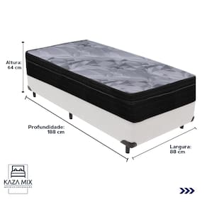 O conforto que sua casa precisa e a qualidade que você merece está na Kazamix! Redefina suas noites de sono com o Colchão Pampa Molas Ensacadas, projetado para oferecer máximo conforto e suporte. Suas molas ensacadas individualmente garantem estabilidade, minimizando vibrações e proporcionando um descanso tranquilo. O Ortopillow com tecido em poliéster de alta resistência e bordado matelassê acrescenta uma camada extra de maciez e conforto. Com tratamento antiácaro, antifungo e tecnologia No Turn, é ideal para quem busca praticidade e um ambiente de sono mais saudável. Este colchão combina qualidade e durabilidade para oferecer uma experiência de descanso incomparável. Modelo: Pampa Marca: Ortobom Tamanho: Solteiro Dimensões: 88x188X24 (Largura x Comprimento x Altura) Conforto: Macio Sistema: Molas ensacadas Pillow: Euro Pillow Peso Máximo recomendado: 120 kg (Por pessoa) Proteções: Antiácaro, antialérgico, antifungo, antimofo Garantia: 1 ano pelo FabricanteO conforto que sua casa precisa e a qualidade que você merece está na Kazamix! Eleve o conforto e a sofisticação do seu quarto com a Cama Box! Produzida em madeira de reflorestamento reforçada, a Cama Box combina qualidade, durabilidade e um design elegante, que confere leveza e modernidade ao seu dormitório. Sua estrutura robusta suporta até 150 kg por pessoa, garantindo a sustentação perfeita para o colchão e prolongando a vida útil do produto. Com uma altura ergonômica, ela oferece maior conforto ao deitar e levantar, enquanto o acabamento de alta qualidade se adapta a qualquer estilo de decoração, unindo praticidade e estilo. Não perca tempo! Adquira agora mesmo a sua Cama Box e transforme seu dormitório com conforto e elegância. Marca: KazaMix Modelo: Box Tamanho: Solteiro Dimensões: 88X188X35 (Largura x Comprimento x Altura) Estrutura: Madeira Peso máximo recomendado: 150 kg (Por Pessoa) Altura do Box: 25 cm Altura dos Pés: 10 cm Altura total: 35 cm Garantia: 03 meses Selo Ecologicamente Correto Atenção: Antes de finalizar sua compra, certifique-se de que as dimensões do produto sejam adequadas para serem transportadas pelos elevadores, portas, escadas e corredores de sua residência. Ressaltamos que não nos responsabilizamos pelo transporte do produto por meios específicos, como escadas, guinchos ou içamentos.