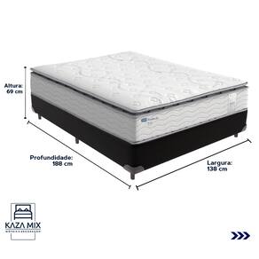 O conforto que sua casa precisa e a qualidade que você merece está na Kazamix! Colchão Probel Amsterdã – a escolha perfeita para noites de sono inigualáveis. Equipado com Molas Ensacadas Prolastic, oferece suporte individualizado, reduzindo a transferência de movimentos para um descanso mais tranquilo. Seu Pillow Top Super proporciona uma camada extra de maciez, elevando o conforto e garantindo uma experiência de luxo. Com camadas de espuma D33 e D65, o Amsterdã combina firmeza e durabilidade, enquanto as proteções antiácaro, antialérgico e antifungo criam um ambiente de sono saudável. Invista em qualidade e bem-estar com o Colchão Probel Amsterdã e transforme suas noites. Modelo: Amsterdã Marca: Probel Tamanho: Casal Dimensões: 138x188X34 (Largura x Comprimento x Altura) Conforto: Firme Sistema: Molas Ensacadas Pillow: Pillow Top Peso Máximo recomendado: 120 kg (Por pessoa) Proteções: Antiácaro, antialérgico, antifungo, antimofo Garantia: 1 ano pelo FabricanteO conforto que sua casa precisa e a qualidade que você merece está na Kazamix! Eleve o conforto e a sofisticação do seu quarto com a Cama Box! Produzida em madeira de reflorestamento reforçada, a Cama Box combina qualidade, durabilidade e um design elegante, que confere leveza e modernidade ao seu dormitório. Sua estrutura robusta suporta até 150 kg por pessoa, garantindo a sustentação perfeita para o colchão e prolongando a vida útil do produto. Com uma altura ergonômica, ela oferece maior conforto ao deitar e levantar, enquanto o acabamento de alta qualidade se adapta a qualquer estilo de decoração, unindo praticidade e estilo. Não perca tempo! Adquira agora mesmo a sua Cama Box e transforme seu dormitório com conforto e elegância. Marca: KazaMix Modelo: Box Tamanho: Casal Dimensões: 138X188X35 (Largura x Comprimento x Altura) Estrutura: Madeira Peso máximo recomendado: 150 kg (Por Pessoa) Altura do Box: 25 cm Altura dos Pés: 10 cm Altura total: 35 cm Garantia: 03 meses Selo Ecologicamente Correto Atenção: Antes de finalizar sua compra, certifique-se de que as dimensões do produto sejam adequadas para serem transportadas pelos elevadores, portas, escadas e corredores de sua residência. Ressaltamos que não nos responsabilizamos pelo transporte do produto por meios específicos, como escadas, guinchos ou içamentos.