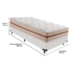 O conforto que sua casa precisa e a qualidade que você merece está na Kazamix! O Colchão Classic da Anjos é a escolha perfeita para quem busca um descanso confortável e duradouro, sem abrir mão de um ótimo custo-benefício. Com sua alta densidade e a tecnologia das molas ensacadas, ele oferece um suporte firme e uma distribuição de peso uniforme, garantindo noites de sono tranquilas e reparadoras. Seu design clean, com uma superfície plana, traz um visual moderno e sofisticado para o ambiente, enquanto o tratamento antiácaro e antialérgico proporciona um ambiente de descanso mais saudável. Ideal para quem deseja conforto, durabilidade e qualidade em um único colchão. Invista no seu bem-estar e transforme suas noites com o colchão Classic da Anjos. Modelo: Classic 26 Marca: Anjos Tamanho: Solteiro Dimensões: 88x188X26 (Largura x Comprimento x Altura) Conforto: Intermediário Sistema: Molas ensacadas Pillow: Não se Aplica Peso Máximo recomendado: 120 kg (Por pessoa) Proteções: Antiácaro, antialérgico, antifungo, antimofo Garantia: 1 ano pelo FabricanteO conforto que sua casa precisa e a qualidade que você merece está na Kazamix! Eleve o conforto e a sofisticação do seu quarto com a Cama Box! Produzida em madeira de reflorestamento reforçada, a Cama Box combina qualidade, durabilidade e um design elegante, que confere leveza e modernidade ao seu dormitório. Sua estrutura robusta suporta até 150 kg por pessoa, garantindo a sustentação perfeita para o colchão e prolongando a vida útil do produto. Com uma altura ergonômica, ela oferece maior conforto ao deitar e levantar, enquanto o acabamento de alta qualidade se adapta a qualquer estilo de decoração, unindo praticidade e estilo. Não perca tempo! Adquira agora mesmo a sua Cama Box e transforme seu dormitório com conforto e elegância. Marca: KazaMix Modelo: Box Tamanho: Solteiro Dimensões: 88X188X35 (Largura x Comprimento x Altura) Estrutura: Madeira Peso máximo recomendado: 150 kg (Por Pessoa) Altura do Box: 25 cm Altura dos Pés: 10 cm Altura total: 35 cm Garantia: 03 meses Selo Ecologicamente Correto Atenção: Antes de finalizar sua compra, certifique-se de que as dimensões do produto sejam adequadas para serem transportadas pelos elevadores, portas, escadas e corredores de sua residência. Ressaltamos que não nos responsabilizamos pelo transporte do produto por meios específicos, como escadas, guinchos ou içamentos.