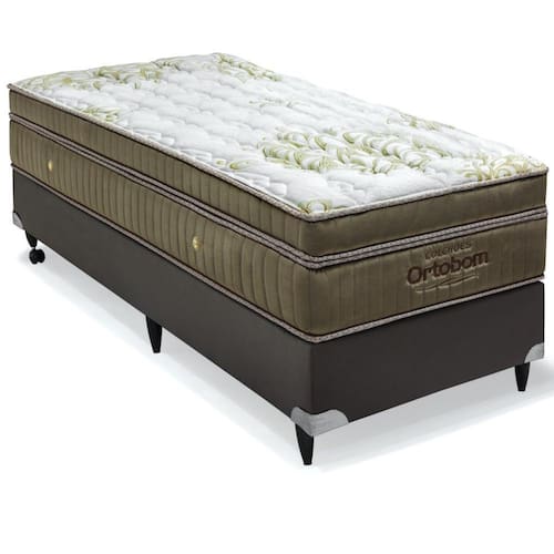Cama box e Colchão Gold Ultra Gel Solteiro (88x188)- Ortobom - Marrom
