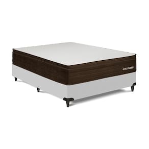 Orevestimento em Malha Lacê tem toque leve e agradável, enquanto a lateral em Linho Marrom dá um toque moderno e sofisticado ao visual. Possui tratamentos antialérgico e antiácaro, que mantêm o ambiente de sono mais saudável. Seu suporte é de até 80 kg por pessoa de cada lado.