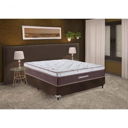 Ortobom Sleep King tem sua estrutura composta por Molas Molas Ensacadas ensacadas individualmente, que fazem o peso de um corpo não interferir no conforto do outro. Possui Ortopillow com camada de espuma Látex (HR 45 de Alta Tecnologia), proporcionando o melhor suporte aos pontos de pressão do corpo. Seu tecido é em malha Ecobambú com elastano e lateral em Camurça, oferecendo um toque mais refrescante e maior suavidade. O Sleep King possui bordeamento lateral com espuma pró aditivada de alta performance, trazendo maios estabilidade e durabilidade ao produto. Possui tratamento contra proliferação de ácaros, bactérias e fungos. Devido a tecnologia No Turn. O Sleep King não precisa ser virado. Você merece um produto assim.