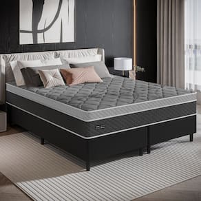 O Cama Box King 193cm Molas Ensacadas Ferrara Umaflex Base 2CEN com molas ensacadas garante conforto e durabilidade. Possui base em madeira revestida em tecido Veluplus, EPS One Face, pilow Euro Top e pes em madeira. Ideal para quem busca apoio firme e sono de qualidade. Revestimento lateral em poliester e tampo em malhas, densidade D-26, suporta ate 120kg. Produto certificado pelo Inmetro -007069/2024-.