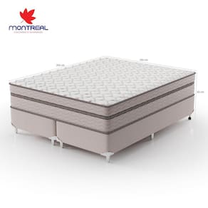 Colchão com Estrutura interna composta de molas ensacadas individualmente, Espuma puliuretano densidade 28kg/m3, EPS - Poliestireno Expandido, feltro resinado e TNT 100g. Faixa lateral e tampo no no tecido sintel, fundo do produto TNT 100g. Cor da faixa lateral Bege, Tampo bege e fundo preto. Box com madeira pinus e eucalipito, revestido com tecido sintel cor bege na faixa lateral, TNT 70g preto na parte de cima e na parte de baixo. Abertura para Ventilação: Não Acompanha Cama Auxiliar: Não Acompanha Colchão: Sim Altura da Base Box (Sem o Colchão): 25 cm Altura do Colchão (Sem a Base Box): 26 cm Ambiente Principal: Quarto Antiácaro: Sim Antialérgico: Sim Antifungo: Sim Cantoneiras: Sim Cor: Bege Cor do Produto: Bege Informações Complementares: Colchão com tecido 100% poliéster, design inovador e estampa floral, é um tecido mais resistente aos desgastes do dia a dia, pois não fura ou desfia com facilidade. Sua estrutura é composta por espuma poliuretano densidade 28kg/m2 que dá mais conforto par Itens Inclusos: 2 Box e 1 Colchão Linha ou Coleção: Linha Manual de Montagem e Instalação: https://cdn2.madeiramadeira.com.br/atributo/m-veis-montreal/783782-7898631956420.pdf Material da Estrutura: Eucalipto Material dos Pés: Plástico Necessita Montagem: Não Nível de Conforto: Intermediário Origem do Produto: Nacional Permite a Utilização de Cama Auxiliar: Não Peso: 69,2 kg Pillow: Pillow Euro Possui Baú: Não Possui Pillow: Sim Precisa virar: Sim Recomendações de Uso, Manutenção e Limpeza: Seguir o manual de instruções Revestimento: Jacquard Poliéster Revestimento da Base Box: Tecido poliester, TNT Antiderrapante Tamanho: King Tamanho de Colchão: King Tipo do Colchão: Mola