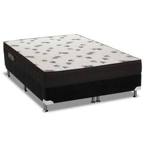 Cama Box King: Colchão Espuma Ortobom D45 Light + Base Crc Suede Black(186X198) - Preto