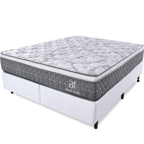 O colchão Smart Spring é uma ótima opção para quem procura conforto e ótimas noites de sono. Confeccionado em malha premium Malibu antialérgica, com bordado matelasssê, é ultra macia e resistente, o que proporciona alto nível de aconchego. Possui Pillow top com espuma viscoelástica (Nasa) que se molda aos contornos do corpo e alivia os pontos de pressão, garantindo um sono reparador. Além disso, contém a espuma Max Flowing, tecnologia exclusiva da BF Colchoes, que faz a sustentação ideal da coluna com o conforto perfeito, resultando em melhores noites de sono. O revestimento é um diferencial a parte, tanto o colchão quanto o box são produzidos em Tecido especial de Linho, que deixa seu ambiente mais elegante.