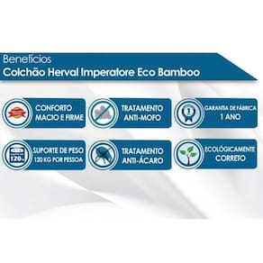 Dimensões(Cm): Comprimento(Profundidade): 203cm x Largura: 193cm x Altura: 34cm Vantagens Extras de Colchão - Ecologicamente Correto - c/ Sistema Polyframe - Manta Acrílica Tipo de Pillow - Pillow Top Americano Tecido com Tratamento do Colchão - AntiÁcaro e AntiFungo Bordado do Revestimento do Colchão - Localizado Forração Revestimento do Colchão - Malha de Alta Qualidade - Fibras de Bambu Forração do Revestimento Inferior do Colchão - Antiderrapante Tecido de Revestimento da Faixa Lateral do Colchão - Bordado Modo de Utilização do Colchão - One Side Camadas Interna do Estofamento de Espuma do Colchão - Viscoelástica - D28 Tipo de Mola do Colchão - Ensacadas MasterPocket Nível de Firmeza do Colchão - Macio c/ Firmeza Peso Máximo Suportado do Colchão - 120 kg Certificação de Qualidade do Colchão - ISO 9001 Nossa Avaliação do Colchão - Qualidade Excelente Tempo de Garantia do Colchão - 12 meses