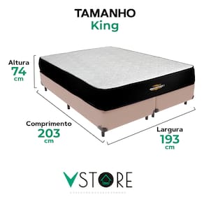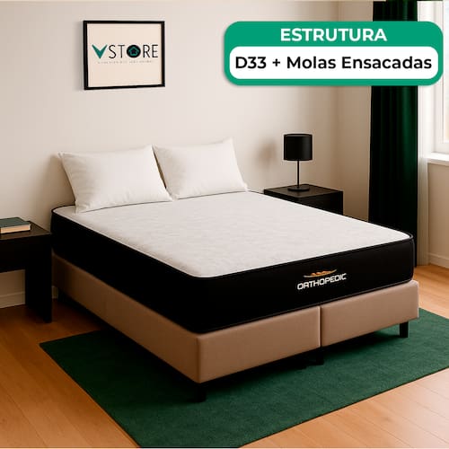 A tecnologia que a sua casa merece está na V-Store! O Conjunto Colchão Orthopedic + Base Box Bravus da V-Store é a união perfeita de conforto e resistência. O colchão, com espuma D33 e suporte extra firme, garante alinhamento ideal e proteção contra ácaros, alergias e fungos. A base box, com estrutura de madeira reflorestada e acabamento em tecido sintético, oferece durabilidade e um design moderno para o seu dormitório.Característica Do Colchão: Modelo: OrthopedicMarca: V-StoreTamanho: KingDimensões: 193x30x203 (Largura x Altura x Comprimento)Conforto: Extra FirmeSistema: EspumaPillow: Não se aplicaPeso Máximo recomendado: 110 kg (Por pessoa)Proteções: Antiácaro, antialérgico, antifungo, antimofoGarantia: 12 Meses (Espuma)Característica Da Base: Marca: V-StoreModelo: BravusTamanho: KingDimensões: 193x44x203 (Largura x Altura x Comprimento)Estrutura: MadeiraPeso máximo recomendado: 150 kg (Por Pessoa)Altura do Box: 26 cmAltura dos Pés: 6 cmAltura total: 44 cmGarantia: 12 Meses (Estrutura) / 3 meses (Tecido)Selo Ecologicamente CorretoAtenção:- Antes de finalizar sua compra, recomendamos que verifique se as dimensões do produto são adequadas para serem transportadas pelos elevadores, portas, escadas e corredores de sua residência. Ressaltamos que não nos responsabilizamos pelo transporte do produto por meios específicos, como escadas, guinchos ou içamentos.- É possível que hajam leves variações de cor de acordo com o dispositivo que está sendo utilizado como smartphones, computadores, monitores e outros.