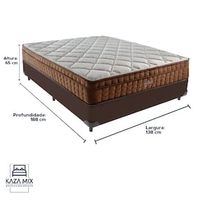 O conforto que sua casa precisa e a qualidade que você merece está na Kazamix!Apresentamos o Colchão Star Pillow In Ortopédico da Anjos, a escolha ideal para quem busca conforto, suporte e um toque extra de luxo. Seu design ortopédico oferece suporte progressivo para a coluna, prevenindo dores nas costas e promovendo o bem-estar durante o sono. O Euro Pillow, uma camada adicional de espuma macia na parte superior, proporciona uma sensação de aconchego e alívio dos pontos de pressão, melhorando ainda mais o conforto.Com revestimento em malha, o colchão garante respirabilidade superior, enquanto o acabamento em veludo nas laterais traz elegância ao produto. O conforto extra firme é perfeito para pessoas até 140kg, oferecendo uma superfície de sono estável e segura. Além disso, o colchão é tratado contra ácaros e fungos, promovendo um ambiente de sono saudável.Invista em noites de sono revitalizantes e desfrute do equilíbrio perfeito entre conforto e qualidade com o Colchão Star Pillow In!Modelo: Anjos Star Pillow InMarca: AnjosTamanho: CasalDimensões: 138x188X30 (Largura x Comprimento x Altura)Conforto: Extra FirmeSistema: Espuma D28Pillow: Pillow TopPeso Máximo recomendado: 140 kg (Por pessoa)Proteções: Antiácaro, antialérgico, antifungo, antimofoGarantia: 1 ano pelo FabricanteO conforto que sua casa precisa e a qualidade que você merece está na Kazamix!Eleve o conforto e a sofisticação do seu quarto com a Cama Box!Produzida em madeira de reflorestamento reforçada, a Cama Box combina qualidade, durabilidade e um design elegante, que confere leveza e modernidade ao seu dormitório. Sua estrutura robusta suporta até 150 kg por pessoa, garantindo a sustentação perfeita para o colchão e prolongando a vida útil do produto.Com uma altura ergonômica, ela oferece maior conforto ao deitar e levantar, enquanto o acabamento de alta qualidade se adapta a qualquer estilo de decoração, unindo praticidade e estilo.Não perca tempo! Adquira agora mesmo a sua Cama Box e transforme seu dormitório com conforto e elegância.Marca: KazaMixModelo: BoxCor do Box: MarromTamanho: CasalDimensões: 138X188X35 (Largura x Comprimento x Altura) Estrutura: MadeiraPeso máximo recomendado: 150 kg (Por Pessoa)Altura do Box: 25 cm Altura dos Pés: 10 cm Altura total: 35 cm Garantia: 03 mesesSelo Ecologicamente CorretoAtenção: Antes de finalizar sua compra, certifique-se de que as dimensões do produto sejam adequadas para serem transportadas pelos elevadores, portas, escadas e corredores de sua residência. Ressaltamos que não nos responsabilizamos pelo transporte do produto por meios específicos, como escadas, guinchos ou içamentos.