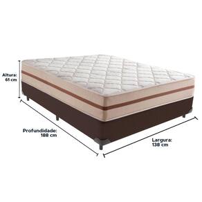 Marca: KazaMix Modelo: Box Cor do Box: Marrom Tamanho: Casal Dimensões: 138X188X35 (Largura x Comprimento x Altura) Estrutura: Madeira Peso máximo recomendado: 150 kg (Por Pessoa) Altura do Box: 25 cm Altura dos Pés: 10 cm Altura total: 35 cm Garantia: 03 meses Selo Ecologicamente Correto