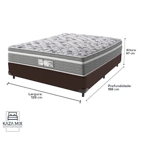 O conforto que sua casa precisa e a qualidade que você merece está na Kazamix!O Colchão Evolution é a escolha ideal para quem busca conforto, suporte e qualidade em cada noite de sono. Com Molas Ensacadas que oferecem um suporte individualizado, e um Pillow Euro que proporciona uma camada extra de suavidade, esse colchão transforma seu descanso em uma experiência de luxo.Com espuma D28 de alta densidade, o Evolution garante firmeza e conforto duradouros. Seu acabamento em poliéster diamante e bordado em matelassê trazem um toque de elegância e sofisticação ao seu ambiente.Além disso, o colchão é tratado com propriedades antiácaro e antialérgico, garantindo um sono mais saudável e seguro.Invista no seu bem-estar com o colchão Evolution, e experimente a combinação perfeita de conforto e durabilidade!Modelo: EvolutionMarca: ProbelTamanho: ViúvoDimensões: 128x188X18 (Largura x Comprimento x Altura)Conforto: IntermediárioSistema: Molas EnsacadasPillow: Euro PillowPeso Máximo recomendado: 110 kg (Por pessoa)Proteções: Antiácaro, antialérgico, antifungo, antimofoGarantia: 1 ano pelo FabricanteO conforto que sua casa precisa e a qualidade que você merece está na Kazamix!Eleve o conforto e a sofisticação do seu quarto com a Cama Box!Produzida em madeira de reflorestamento reforçada, a Cama Box combina qualidade, durabilidade e um design elegante, que confere leveza e modernidade ao seu dormitório. Sua estrutura robusta suporta até 150 kg por pessoa, garantindo a sustentação perfeita para o colchão e prolongando a vida útil do produto.Com uma altura ergonômica, ela oferece maior conforto ao deitar e levantar, enquanto o acabamento de alta qualidade se adapta a qualquer estilo de decoração, unindo praticidade e estilo.Não perca tempo! Adquira agora mesmo a sua Cama Box e transforme seu dormitório com conforto e elegância.Marca: KazaMixModelo: BoxCor do Box: MarromTamanho: ViúvoDimensões: 128X188X35 (Largura x Comprimento x Altura) Estrutura: MadeiraPeso máximo recomendado: 150 kg (Por Pessoa)Altura do Box: 25 cm Altura dos Pés: 10 cm Altura total: 35 cm Garantia: 03 mesesSelo Ecologicamente CorretoAtenção: Antes de finalizar sua compra, certifique-se de que as dimensões do produto sejam adequadas para serem transportadas pelos elevadores, portas, escadas e corredores de sua residência. Ressaltamos que não nos responsabilizamos pelo transporte do produto por meios específicos, como escadas, guinchos ou içamentos.