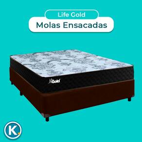 Cama + Box Marrom e Colchão Molas Ensacadas Casal - Life Gold Paropas