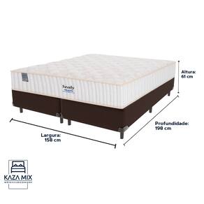 Bem-vindo(a) ao nosso catálogo! Apresentamos a você uma descrição completa sobre esse produto: A marca SealyEntre as personalidades que usam e usaram os colchões da marca Sealy estão a cantora Adele, Rainha Elizabeth II, a apresentadora Ellen DeGeneres e o jogador de basquete LeBron James. Atendendo também os hotéis da Disney, Copacabana Palace, Hard Rock Hotels e outros. Referência na fabricação de colchões de alta qualidade, a empresa foi fundada em 1881. Investindo em tecnologia de ponta e materiais premium para produzir produtos duráveis e confortáveis, é reconhecida por diversos consumidores famosos em todo o mundo. Modelo: MiamiNível de Conforto: FirmeSuporte de peso: 240kg (120kg por pessoa)Pillow Top: EuroPillowMolas: Ensacadas Altura: 26cmO sistema Polyframe reforça as bordas do colchão com espuma de alto suporte. Essa estrutura envolve toda a lateral do colchão. Por conseguinte, aumenta a área útil de sono e proporciona firmeza adicional nas laterais. Assim, garante um uso homogêneo de toda a superfície do colchão. Ademais, a Manta Acrílica protege as molas e a espuma. Este material aumenta a firmeza e estabilidade do colchão, contribuindo para sua durabilidade ao evitar o desgaste prematuro. - Proporciona uma área de sono maior e mais firme. - Previne o desgaste prematuro das molas e da espuma. - Garante um uso homogêneo da superfície do colchão. Os colchões Sealy são fabricados segundo os altos padrões dos laboratórios americanos, líderes em inovação. Além disso, esta tecnologia garante uma zona de conforto ampliada, assegurando a qualidade excepcional do produto. Além disso, o EuroPillow adiciona uma camada de maciez extra. Este elemento atua como um travesseiro gigante no topo do colchão, proporcionando uma aparência de luxo e conforto adicional. Proteção Antiácaro e AntifungoOs colchões Sealy possuem tratamento especial contra ácaros, fungos e outras bactérias. Esse tratamento é vital, especialmente em climas tropicais onde a umidade pode facilitar o crescimento de ácaros e fungos. Portanto, ele previne crises alérgicas respiratórias comuns nesses ambientes. O revestimento inferior do colchão é antiderrapante, garantindo que ele permaneça estável mesmo com movimentos intensos. Além disso, o tecido Suede na faixa lateral dá um toque macio e confere um visual elegante ao colchão. Este colchão possui molas ensacadas que oferecem suporte individualizado. Cada mola responde de forma independente, adaptando-se ao peso de cada usuário sem transferir movimento. Portanto, ele é ideal para garantir uma boa noite de sono a todos os biótipos. Além de tudo, esse produto acompanha a Cama Box da Kaza Mix e assim se torna um conjunto perfeito para o seu quarto! Marca: Kaza MixCor do Box: MarromTamanho: QueenMaterial dos pés: MadeiraEstrutura: MadeiraPeso máximo recomendado: Até 150kg de cada ladoLargura: 158cmComprimento: 198cmAltura dos pés: 12cmAltura total: 42cmGarantia: 03 mesesSelo Ecologicamente CorretoAtenção: - Antes de finalizar sua compra, recomendamos que verifique se as dimensões do produto são adequadas para serem transportadas pelos elevadores, portas, escadas e corredores de sua residência. Ressaltamos que não nos responsabilizamos pelo transporte do produto por meios específicos, como escadas, guinchos ou içamentos. - É possível que hajam leves variações de cor de acordo com o dispositivo que está sendo utilizado como smartphones, computadores, monitores e outros.