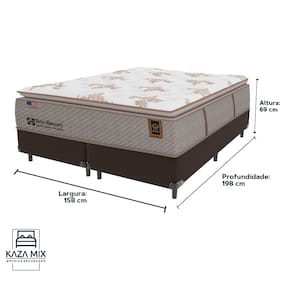 Bem-vindo(a) ao nosso catálogo! Apresentamos a você uma descrição completa sobre esse produto: A marca SealyEntre as personalidades que usam e usaram os colchões da marca Sealy estão a cantora Adele, Rainha Elizabeth II, a apresentadora Ellen DeGeneres e o jogador de basquete LeBron James. Atendendo também os hotéis da Disney, Copacabana Palace, Hard Rock Hotels e outros. Referência na fabricação de colchões de alta qualidade, a empresa foi fundada em 1881. Investindo em tecnologia de ponta e materiais premium para produzir produtos duráveis e confortáveis, é reconhecida por diversos consumidores famosos em todo o mundo. Modelo: Ritz ResortNível de Conforto: Extra MacioSuporte de peso: 300 quilos (150kg por pessoa)Molas: Dual Support SystemPillow: Pastel com High TechEspuma: Espuma D28 Soft GelAltura: 34cmTecido: Malha Coleção Flor de Lis 380gO Colchão Ritz Resort Sealy: Molas Ensacadas com 34cm, não apenas representa o ápice em conforto, mas também incorpora tecnologia avançada para o descanso noturno. As molas ensacadas individualmente, conhecidas pelo sistema DSS (Dual Support System), oferecem suporte independente que se ajusta perfeitamente ao corpo. Além disso, elas minimizam a transferência de movimento entre parceiros durante a noite, sendo ideal para casais. Da mesma forma, a espuma Soft Gel fornece uma superfície de descanso acolhedora e termorreguladora, adaptando-se à temperatura do corpo e proporcionando conforto em todas as estações. Combinando tecnologia de ponta, materiais de alta qualidade e proteções integradas, o Colchão Ritz Resort Sealy surge como a escolha perfeita para quem busca uma boa noite de sono e uma experiência de descanso luxuosa e rejuvenescedora. Além de tudo, esse produto acompanha a Cama Box da Kaza Mix e assim se torna um conjunto perfeito para o seu quarto! Marca: Kaza MixCor do Box: MarromTamanho: QueenMaterial dos pés: MadeiraEstrutura: MadeiraPeso máximo recomendado: Até 150kg de cada ladoLargura: 158cmComprimento: 198cmAltura dos pés: 12cmAltura total: 42cmGarantia: 03 mesesSelo Ecologicamente CorretoAtenção: - Antes de finalizar sua compra, recomendamos que verifique se as dimensões do produto são adequadas para serem transportadas pelos elevadores, portas, escadas e corredores de sua residência. Ressaltamos que não nos responsabilizamos pelo transporte do produto por meios específicos, como escadas, guinchos ou içamentos. - É possível que hajam leves variações de cor de acordo com o dispositivo que está sendo utilizado como smartphones, computadores, monitores e outros.