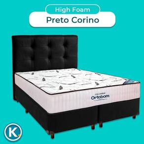 Cama Box Preto Com Colchão Queen High Foam Ortobom Com Cabeceira Conjunto Queen Colchão High Foam + Cama Box Preto + Cabeceira O Colchão High Foam Espuma HR D33 Ortobom é desenvolvido com tecido de malha de poliéster de eucalipto, tratado com aloe vera, óleo de jojoba e vitamina E proporcionando um toque macio, refrescante e um verdadeiro tratamento de beleza enquanto você dorme.