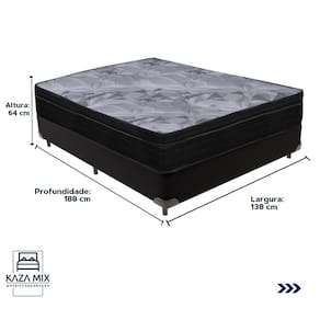 O conforto que sua casa precisa e a qualidade que você merece está na Kazamix!Redefina suas noites de sono com o Colchão Pampa Molas Ensacadas, projetado para oferecer máximo conforto e suporte. Suas molas ensacadas individualmente garantem estabilidade, minimizando vibrações e proporcionando um descanso tranquilo. O Ortopillow com tecido em poliéster de alta resistência e bordado matelassê acrescenta uma camada extra de maciez e conforto. Com tratamento antiácaro, antifungo e tecnologia No Turn, é ideal para quem busca praticidade e um ambiente de sono mais saudável. Este colchão combina qualidade e durabilidade para oferecer uma experiência de descanso incomparável.Modelo: Pampa Marca: OrtobomTamanho: CasalDimensões: 138x188X24 (Largura x Comprimento x Altura)Conforto: MacioSistema: Molas ensacadas Pillow: Euro PillowPeso Máximo recomendado: 120 kg (Por pessoa)Proteções: Antiácaro, antialérgico, antifungo, antimofoGarantia: 1 ano pelo FabricanteO conforto que sua casa precisa e a qualidade que você merece está na Kazamix!Eleve o conforto e a sofisticação do seu quarto com a Cama Box!Produzida em madeira de reflorestamento reforçada, a Cama Box combina qualidade, durabilidade e um design elegante, que confere leveza e modernidade ao seu dormitório. Sua estrutura robusta suporta até 150 kg por pessoa, garantindo a sustentação perfeita para o colchão e prolongando a vida útil do produto.Com uma altura ergonômica, ela oferece maior conforto ao deitar e levantar, enquanto o acabamento de alta qualidade se adapta a qualquer estilo de decoração, unindo praticidade e estilo.Não perca tempo! Adquira agora mesmo a sua Cama Box e transforme seu dormitório com conforto e elegância.Marca: KazaMixModelo: BoxCor do Box: PretoTamanho: CasalDimensões: 138X188X35 (Largura x Comprimento x Altura) Estrutura: MadeiraPeso máximo recomendado: 150 kg (Por Pessoa)Altura do Box: 25 cm Altura dos Pés: 10 cm Altura total: 35 cm Garantia: 03 mesesSelo Ecologicamente CorretoAtenção: Antes de finalizar sua compra, certifique-se de que as dimensões do produto sejam adequadas para serem transportadas pelos elevadores, portas, escadas e corredores de sua residência. Ressaltamos que não nos responsabilizamos pelo transporte do produto por meios específicos, como escadas, guinchos ou içamentos.