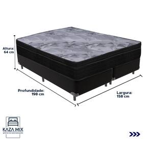 O conforto que sua casa precisa e a qualidade que você merece está na Kazamix!Redefina suas noites de sono com o Colchão Pampa Molas Ensacadas, projetado para oferecer máximo conforto e suporte. Suas molas ensacadas individualmente garantem estabilidade, minimizando vibrações e proporcionando um descanso tranquilo. O Ortopillow com tecido em poliéster de alta resistência e bordado matelassê acrescenta uma camada extra de maciez e conforto. Com tratamento antiácaro, antifungo e tecnologia No Turn, é ideal para quem busca praticidade e um ambiente de sono mais saudável. Este colchão combina qualidade e durabilidade para oferecer uma experiência de descanso incomparável.Modelo: Pampa Marca: OrtobomTamanho: QueenDimensões: 158x198X24 (Largura x Comprimento x Altura)Conforto: MacioSistema: Molas ensacadas Pillow: Euro PillowPeso Máximo recomendado: 120 kg (Por pessoa)Proteções: Antiácaro, antialérgico, antifungo, antimofoGarantia: 1 ano pelo FabricanteO conforto que sua casa precisa e a qualidade que você merece está na Kazamix!Eleve o conforto e a sofisticação do seu quarto com a Cama Box!Produzida em madeira de reflorestamento reforçada, a Cama Box combina qualidade, durabilidade e um design elegante, que confere leveza e modernidade ao seu dormitório. Sua estrutura robusta suporta até 150 kg por pessoa, garantindo a sustentação perfeita para o colchão e prolongando a vida útil do produto.Com uma altura ergonômica, ela oferece maior conforto ao deitar e levantar, enquanto o acabamento de alta qualidade se adapta a qualquer estilo de decoração, unindo praticidade e estilo.Não perca tempo! Adquira agora mesmo a sua Cama Box e transforme seu dormitório com conforto e elegância.Marca: KazaMixModelo: BoxCor do Box: PretoTamanho: QueenDimensões: 158X198X35 (Largura x Comprimento x Altura) Estrutura: MadeiraPeso máximo recomendado: 150 kg (Por Pessoa)Altura do Box: 25 cm Altura dos Pés: 10 cm Altura total: 35 cm Garantia: 03 mesesSelo Ecologicamente CorretoAtenção: Antes de finalizar sua compra, certifique-se de que as dimensões do produto sejam adequadas para serem transportadas pelos elevadores, portas, escadas e corredores de sua residência. Ressaltamos que não nos responsabilizamos pelo transporte do produto por meios específicos, como escadas, guinchos ou içamentos.