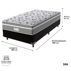 O conforto que sua casa precisa e a qualidade que você merece está na Kazamix!O Colchão Evolution é a escolha ideal para quem busca conforto, suporte e qualidade em cada noite de sono. Com Molas Ensacadas que oferecem um suporte individualizado, e um Pillow Euro que proporciona uma camada extra de suavidade, esse colchão transforma seu descanso em uma experiência de luxo.Com espuma D28 de alta densidade, o Evolution garante firmeza e conforto duradouros. Seu acabamento em poliéster diamante e bordado em matelassê trazem um toque de elegância e sofisticação ao seu ambiente.Além disso, o colchão é tratado com propriedades antiácaro e antialérgico, garantindo um sono mais saudável e seguro.Invista no seu bem-estar com o colchão Evolution, e experimente a combinação perfeita de conforto e durabilidade!Modelo: EvolutionMarca: ProbelTamanho: SolteiroDimensões: 88x188X32 (Largura x Comprimento x Altura)Conforto: IntermediárioSistema: Molas EnsacadasPillow: Euro PillowPeso Máximo recomendado: 110 kg (Por pessoa)Proteções: Antiácaro, antialérgico, antifungo, antimofoGarantia: 1 ano pelo FabricanteO conforto que sua casa precisa e a qualidade que você merece está na Kazamix!Eleve o conforto e a sofisticação do seu quarto com a Cama Box!Produzida em madeira de reflorestamento reforçada, a Cama Box combina qualidade, durabilidade e um design elegante, que confere leveza e modernidade ao seu dormitório. Sua estrutura robusta suporta até 150 kg por pessoa, garantindo a sustentação perfeita para o colchão e prolongando a vida útil do produto.Com uma altura ergonômica, ela oferece maior conforto ao deitar e levantar, enquanto o acabamento de alta qualidade se adapta a qualquer estilo de decoração, unindo praticidade e estilo.Não perca tempo! Adquira agora mesmo a sua Cama Box e transforme seu dormitório com conforto e elegância.Marca: KazaMixModelo: BoxCor do Box: PretoTamanho: SolteiroDimensões: 88X188X35 (Largura x Comprimento x Altura) Estrutura: MadeiraPeso máximo recomendado: 150 kg (Por Pessoa)Altura do Box: 25 cm Altura dos Pés: 10 cm Altura total: 35 cm Garantia: 03 mesesSelo Ecologicamente CorretoAtenção: Antes de finalizar sua compra, certifique-se de que as dimensões do produto sejam adequadas para serem transportadas pelos elevadores, portas, escadas e corredores de sua residência. Ressaltamos que não nos responsabilizamos pelo transporte do produto por meios específicos, como escadas, guinchos ou içamentos.