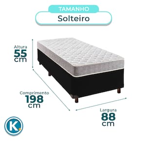 Cama Box Preto Solteiro + Colchão D33 Inducol