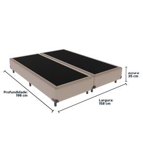 Marca: KazaMix Modelo: Box Cor do Box: Bege Tamanho: Queen Dimensões: 158X198X35 (Largura x Comprimento x Altura) Estrutura: Madeira Peso máximo recomendado: 150 kg (Por Pessoa) Altura do Box: 25 cm Altura dos Pés: 10 cm Altura total: 35 cm Garantia: 03 meses Selo Ecologicamente Correto