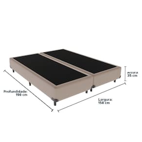 Marca: KazaMix Modelo: Box Cor do Box: Bege Tamanho: Queen Dimensões: 158X198X35 (Largura x Comprimento x Altura) Estrutura: Madeira Peso máximo recomendado: 150 kg (Por Pessoa) Altura do Box: 25 cm Altura dos Pés: 10 cm Altura total: 35 cm Garantia: 03 meses Selo Ecologicamente Correto