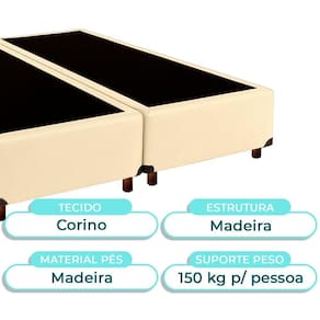 Modelo: Universal Marca: Nature Tamanho: Casal Tecido: Material Sintético Largura: 138cm Comprimento: 188cm Altura: 25cm Altura dos Pés: 13cm Material dos Pés: Madeira Suporte de Peso: 150Kg Peso: 27Kg Garantia: 3 Meses