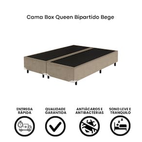 Cama Box Queen Bipartido 158×198 Bege – Base Reforçada