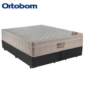 Cama Box Queen Bipartido Sintético + Colchão Ortobom Airtech Molas Ensacadas 65x158x198 Cinza