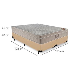 Cama Box Queen Bipartido Sintético + Colchão Ortobom Airtech Molas Ensacadas 65x158x198 - Bege