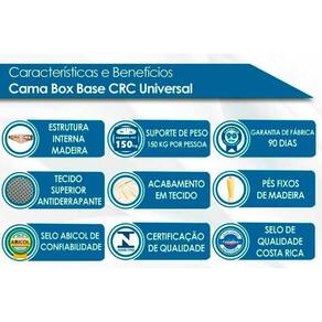 Dimensões(Cm): Comnto(Profundidade): 198cm x Largura: 158cm x Altura: 20cm Sobre a Cama Box Base - Informações da Cama Box Base - Vantagens Forração de Revestimento da Cama Box - Tecido - Antiderrapante Cor da Forração Revestimento Cama Box - Bege Altura da Cama Box com os Pés - 38 cm altura Detalhes Gerais da Cama Box - Pés Fixos Madeira/ABS - Pés foto ilustrativa de acordo com a fabricação pode ser madeira/abs e preto/branco/prateado ou madeirado. - Cantoneira foto ilustrativa não faz parte ou acompanha o produto. Altura dos pés da Cama Box - 12cm Forração de Revestimento da Cama Box - Poliéster - Tecido de Alta Qualidade Características Internas Cama Box - Estrutura de Madeira Suporte de Peso da Cama Box - 150 Kg Certificações de Qualidade da Cama Box - Qualidade Aprovada - Certificação de - Selo Ecologicamente Correto - Garantia de Qualidade Costa Rica Nossa Avaliação da Cama Box - Qualidade Muito Boa Tempo de Garantia da Cama Box - 3 meses