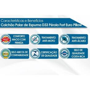Dimensões(Cm): Comprimento(Profundidade): 198cm x Largura: 158cm x Altura: 24cm Tipo de Pillow - Pillow Top Europeu Tipo de Bordado do Tecido de Revestimento - Matelassê Tipo Tecido de Forração Revestimento - Granitê Tecido com Tratamento - AntiÁcaro e AntiFungo Modo de Utilização - Double Side Tipo de Estrutura do Bloco de Espuma - D33 Camadas Interna do Estofamento de Espuma - Alta Qualidade Peso Máximo Suportado - 110 kg Tipo de Conforto - Macio c/ Firmeza Certificados de Qualidade - Qualidade Aprovada - Selo Abicol - Qualidade Costa Rica - INMETRO Nossa Avaliação - Qualidade Muito Boa Tempo de Garantia - 12 meses