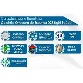 Dimensões(Cm): Comprimento(Profundidade): 198cm x Largura: 158cm x Altura: 16cm Vantagens Extras de Colchão - Ecologicamente Correto Tecido com Tratamento do Colchão - AntiÁcaro e AntiFungo Bordado do Revestimento do Colchão - Contínuo Forração Revestimento do Colchão - Poliéster - Viscose Tecido de Revestimento da Faixa Lateral do Colchão - Poliéster Modo de Utilização do Colchão - Double Side Tipo de Espuma do Colchão - Espuma de Poliol Vegetal Densidade da Espuma do Colchão - D28 Nível de Firmeza do Colchão - Macio Peso Máximo Suportado do Colchão - 80 kg Certificação de Qualidade do Colchão - INMETRO Nossa Avaliação do Colchão - Qualidade Muito Boa Tempo de Garantia do Colchão - Certificado de Garantia Digital - 12 meses