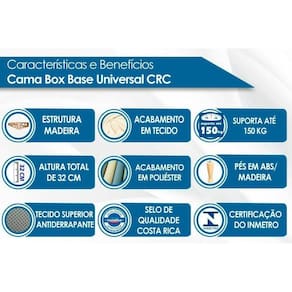 BENEFÍCIOS GERAIS DA CAMA BOX Certificações de Qualidade da Cama Box - Qualidade Aprovada - Certificação de Segurança - Selo Ecologicamente Correto - Garantia de Qualidade Costa Rica Nossa Avaliação da Cama Box - Qualidade Muito Boa Tempo de Garantia da Cama Box - 3