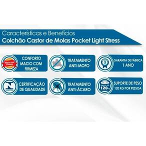 Conjunto Box Queen: Colchão Molas Castor Ensacadas Gold Star Light Oxygen New Plush + Base CRC Suede Gray (158x198) Abaixo segue os produtos do KIT: Conjunto Box Queen: Colchão Molas Castor Ensacadas Gold Star Light Oxygen New Plush + Base CRC Suede Gray (158x198)