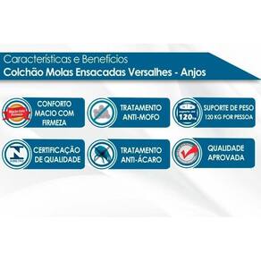 Dimensões(Cm): Comprimento(Profundidade): 198cm x Largura: 158cm x Altura: 30cm Tipo de Pillow - Pillow Top Americano Tecido com Tratamento do Colchão - e Bordado do Revestimento do Colchão - Localizado Forração Revestimento do Colchão - Malha de Alta Qualidade Forração do Revestimento Inferior do Colchão - Antiderrapante Tecido de Revestimento da Faixa Lateral do Colchão - Veludo Modo de Utilização do Colchão - One Side Camadas Interna do Estofamento de Espuma do Colchão - Hiper Soft - D28 Tipo de Mola do Colchão - Ensacadas Nível de Firmeza do Colchão - Macio c/ Firmeza Peso Máximo Suportado do Colchão - 120 kg Certificação de Qualidade do Colchão - Qualidade Aprovada - Qualidade Costa Rica - INMETRO - Selo Abicol Nossa Avaliação do Colchão - Qualidade Muito Boa Tempo de Garantia do Colchão - 12 meses