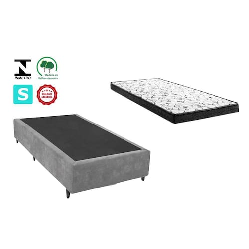 Cama Box Solteirão Cinza Suede + Colchão Espuma D20 96x203x8 - Preto