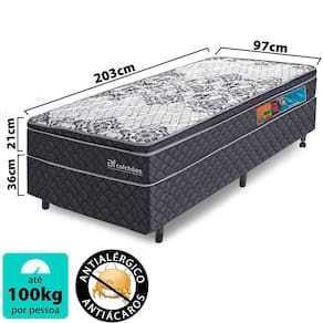 Medidas do Colchão: - Tamanho: Solteirão - Altura: 21 cm - Largura: 97 cm - Profundidade: 203 cm