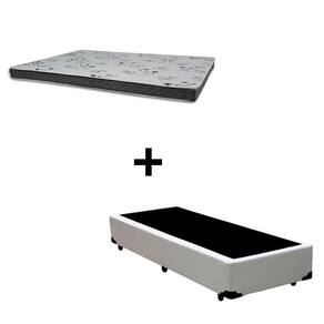 Cama Box Solteiro 88 Tecido Sintético Branco Com Colchão Miller Bello Box - 100% Espuma - D33 Cinza 54x88x188