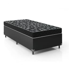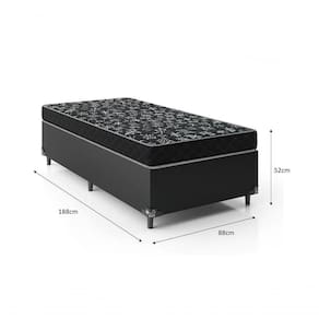 Cama Box Solteiro 88 Tecido Sintético Preto Com Colchão Espuma D20 - Tampo Preto 12cm