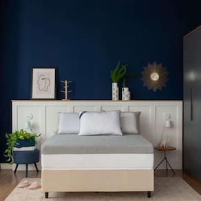 cama box solteiro bege com colchão guldi dream mola ensacada (30x88x188) e 1 travesseiro guldi dream branco e azul