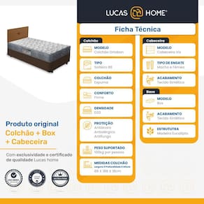 O colchão de espuma ISO 100 contém densidade D33, poliéster, viscose, poliestireno expandido e proporciona firmeza ao deitar-se para não prejudicar sua coluna.A Cabeceira Iris é produzida com madeira MDP, possui revestimento em tecido poliéster e espuma D13, o seu encosto é fixo o que deixa a sua cama mais confortável e aconchegante.