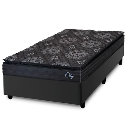 MODELO: Cama Box Solteiro Colchão Com Molas Ensacadas City Pillow Top 88x188x61cm Preto Hellen