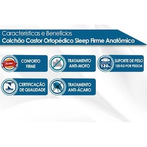 Abaixo segue os produtos do KIT: Conjunto Box Solteiro: Colchão Espuma Castor D28 Sleep Max + Base CRC Courano White (88x188)
