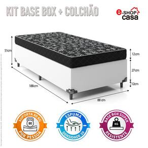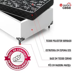 Cama Box Solteiro + Colchão Espuma D20 - Couro Branco - e-Shop Casa