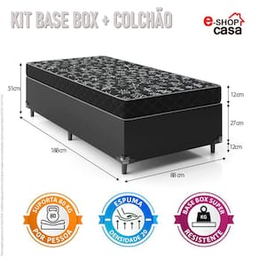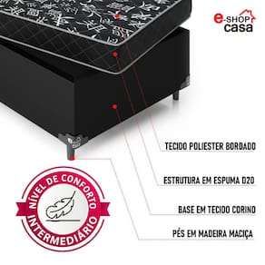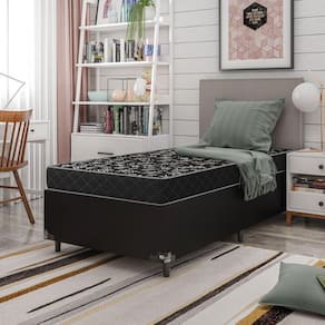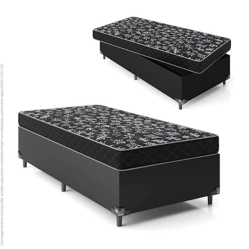 Cama Box Solteiro + Colchão Espuma D20 - Couro Preto - e-Shop Casa